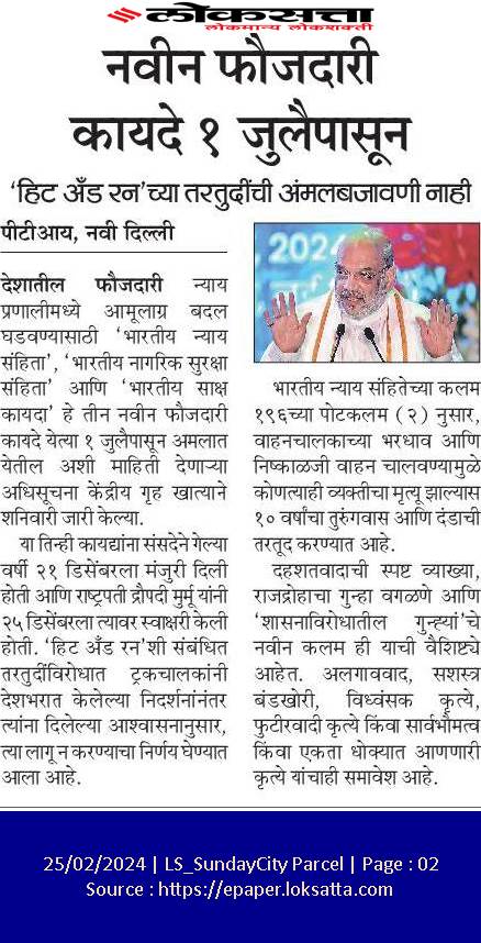 वरील ब्रिटिशकालीन कायद्यांच्या जागी प्रस्तावित कायदे घेणार आहेत.- भारतीय न्याय संहिता (बीएनएस) विधेयक २०२३.